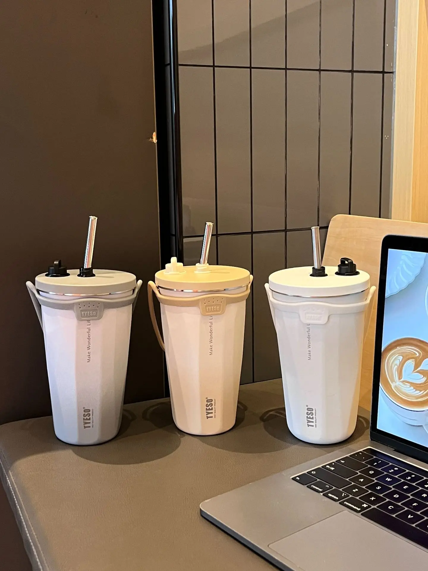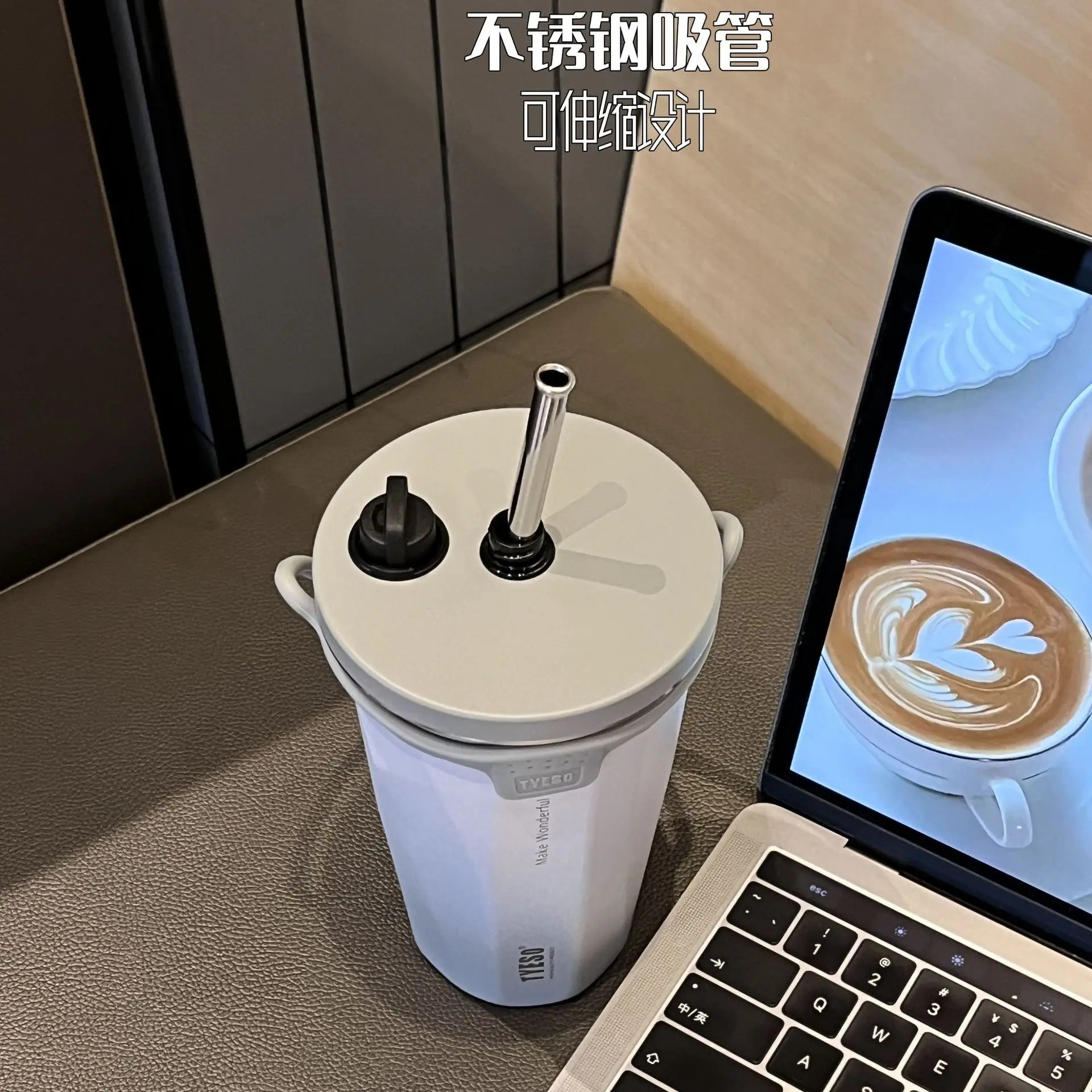 - mug with a straw: stainless steel mug