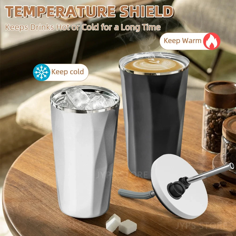 600ML Thermos Coffee Cup Straw Cup With Lids Stainless Steel Tumbler Mug Coffee Tea Cold Drink Bottle Travel Thermal Mug Gifts