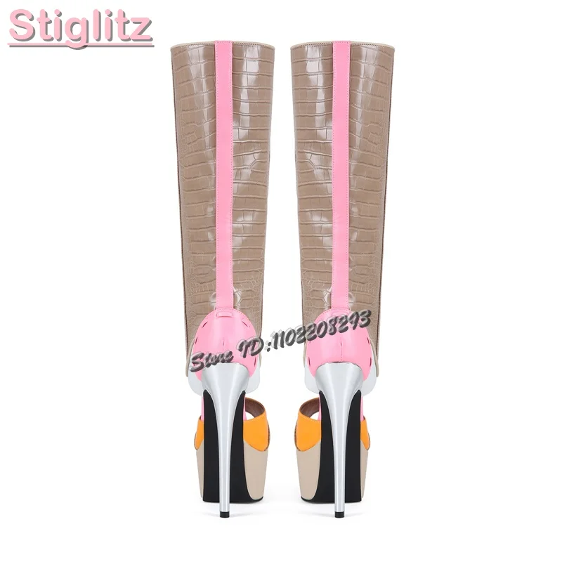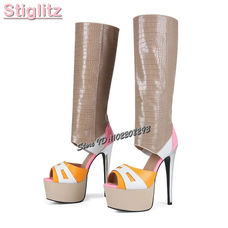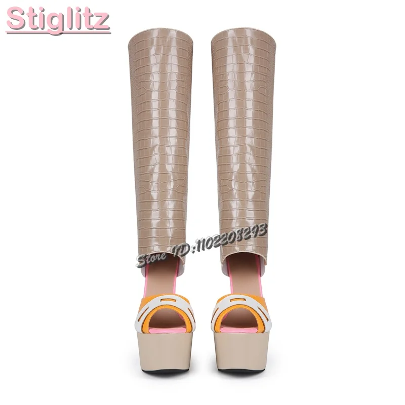 Product:Sexy Polka Dots Knee-high Sandals Patchwork Leather Peep Toe Metal Heel Summer Boots 2026 Summer New Fashion Stiletto Women Shoes