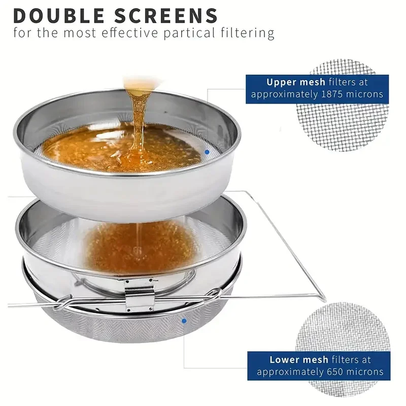 Stainless Steel Beekeeping Double Layers Sieve with Holders Honey Filter Settling Tank Colanders Strainers For Kitchen Tools