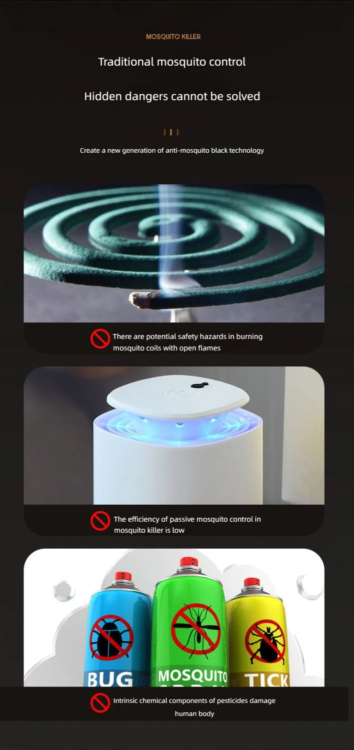 Automatic mosquito attraction / TYPE-C charging / Security protection grid / Extra Long Range